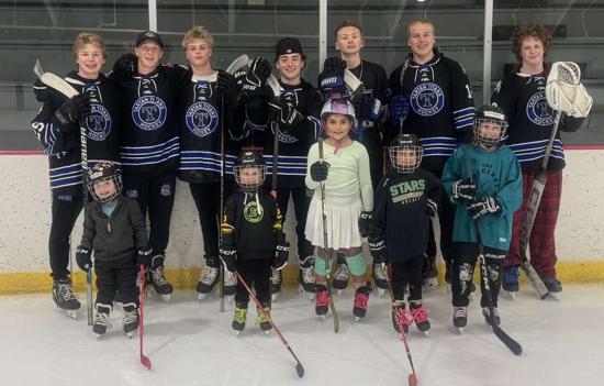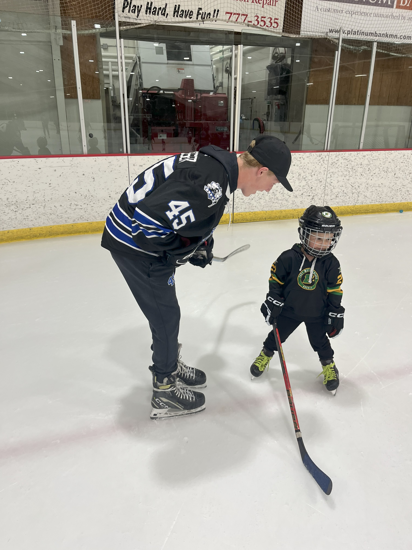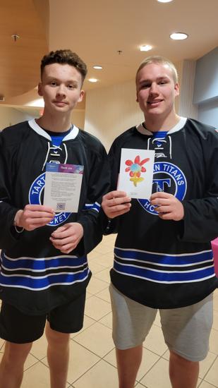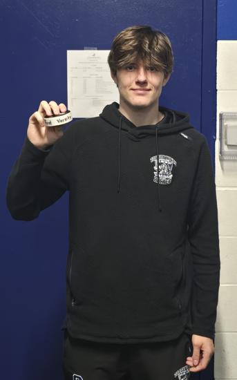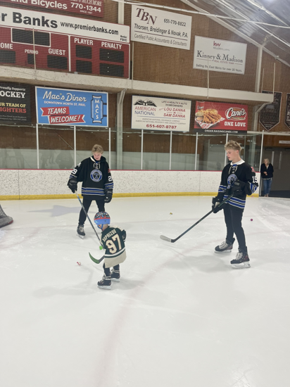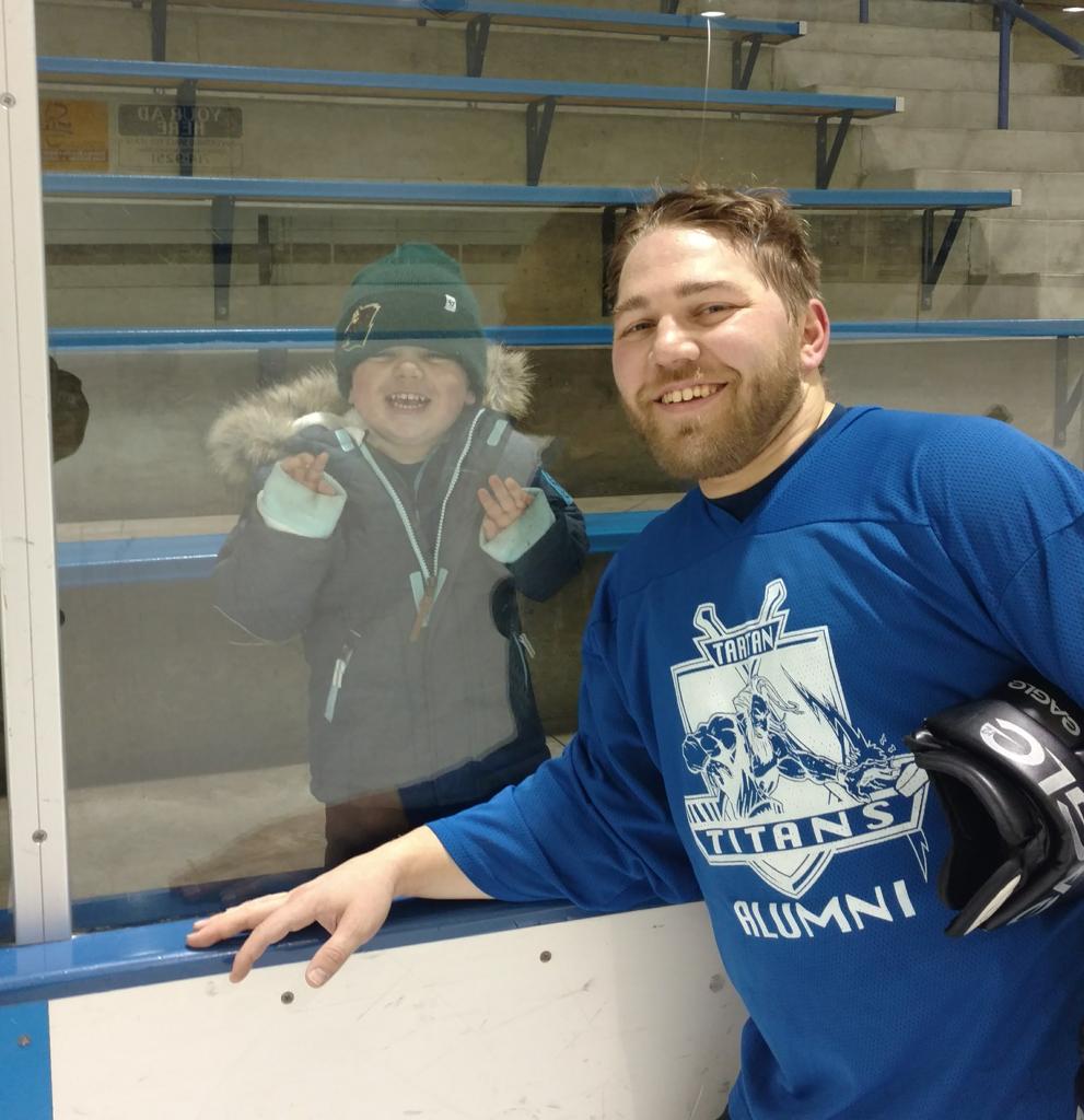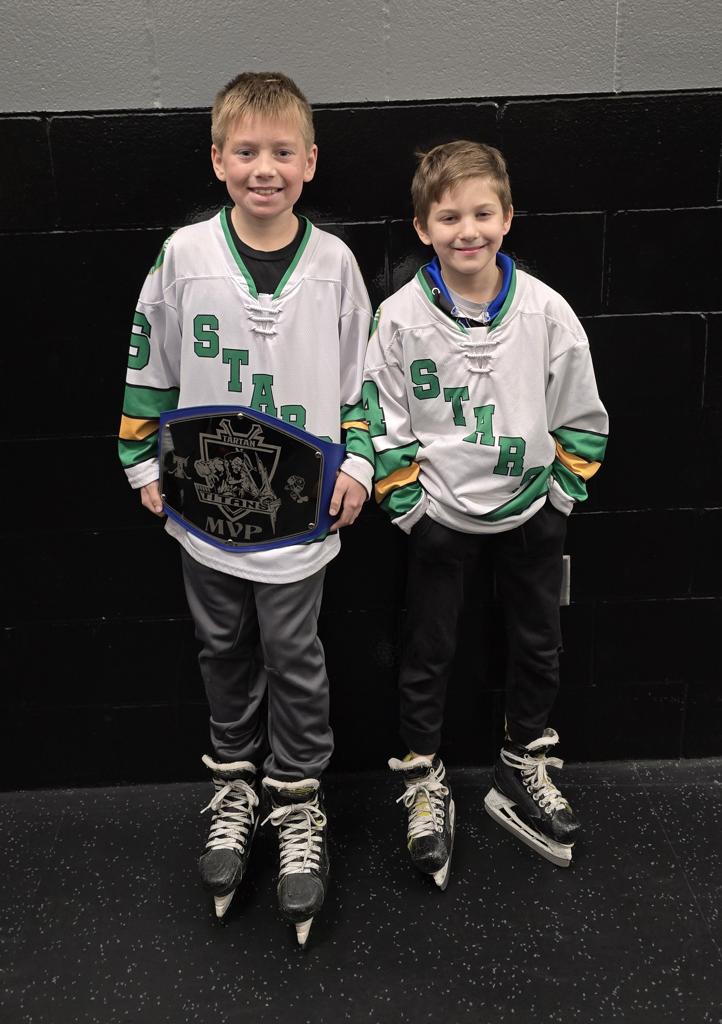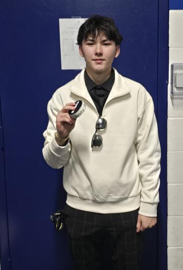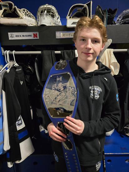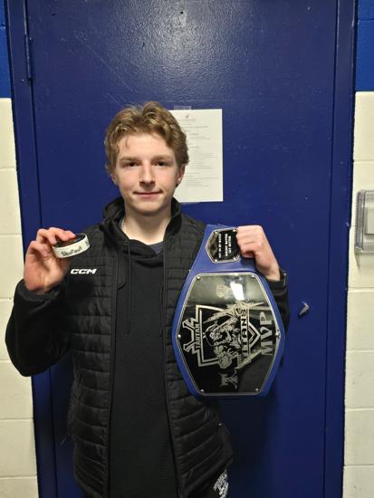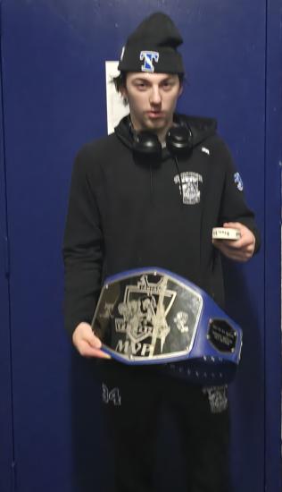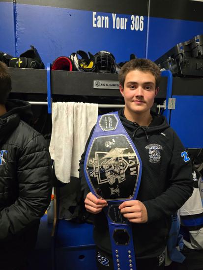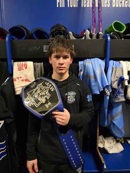 Caleb Thompson awarded the Player of the Game Belt with Cayden Parent. The belt originated from Caleb's late father, alumni & coach of the Titans. The Tartan North hockey team would like to thank the boys for dropping the puck & acknowledging Chris Thompson before our game.